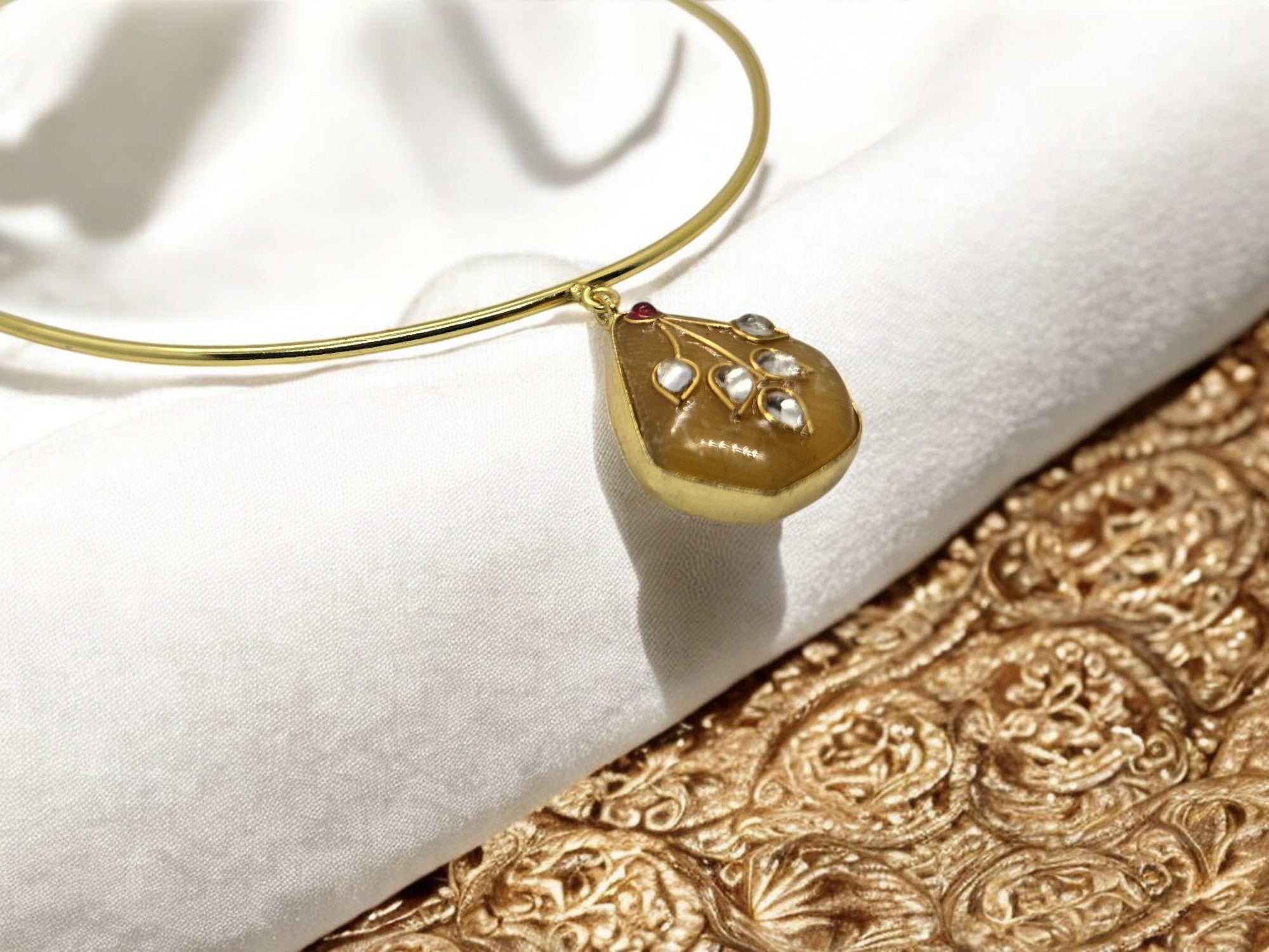 Minimalist Neckpiece with MoP Pendant and Rose Motif